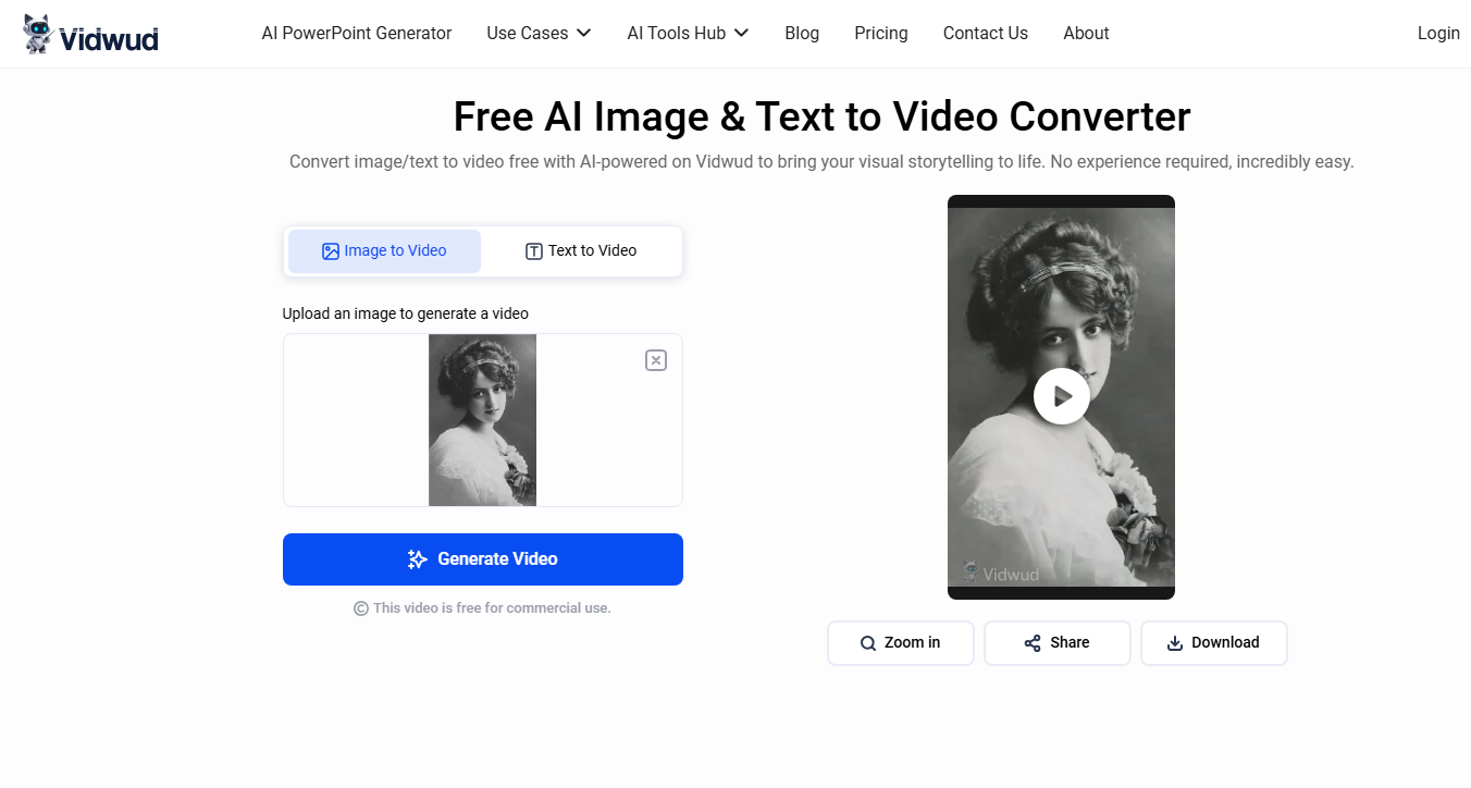 Step 1: Open the official Vidwud Image to Video AI tool.